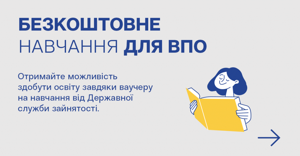 Здобуття нової професії, підвищення кваліфікації та перекваліфікація. Держава надає внутрішньо переміщеним особам 30 280 грн фінансової підтримки для навчання. Ініціатива «Ваучери на навчання» впроваджується Державною службою зайнятості України. ВПО отримують ваучер на оплату навчання в ліцензованих закладах освіти. Якщо обрана програма навчання коштує дорожче, різницю може доплатити…