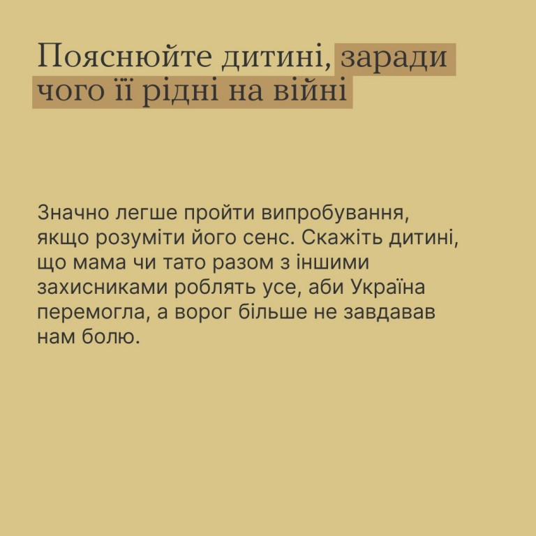 Коли рідні чи близькі нам люди йдуть на фронт, це випробування і подвійний стрес для всієї родини. Та ще складніше дати собі раду з цим малечі, яка не має відповідей на безліч запитань і сприймає реальність дещо інакше.