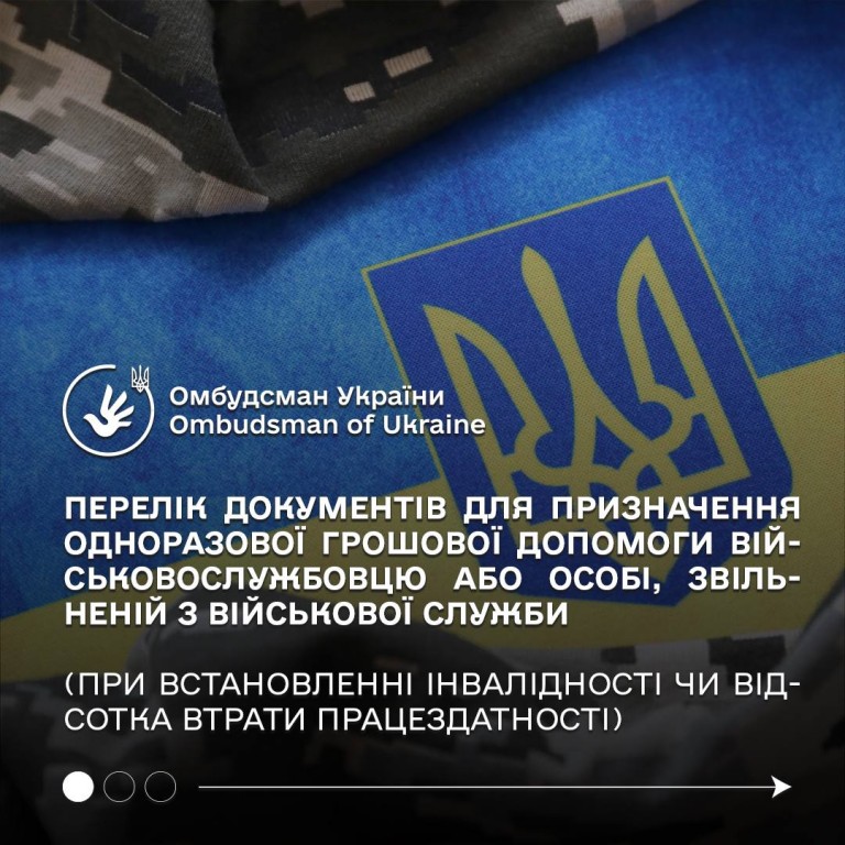 ОДНОРАЗОВА ГРОШОВА ДОПОМОГА ДЛЯ ВІЙСЬКОВОСЛУЖБОВЦЯ АБО ОСОБІ, ЗВІЛЬНЕНІЙ З ВІЙСЬКОВОЇ СЛУЖБИ