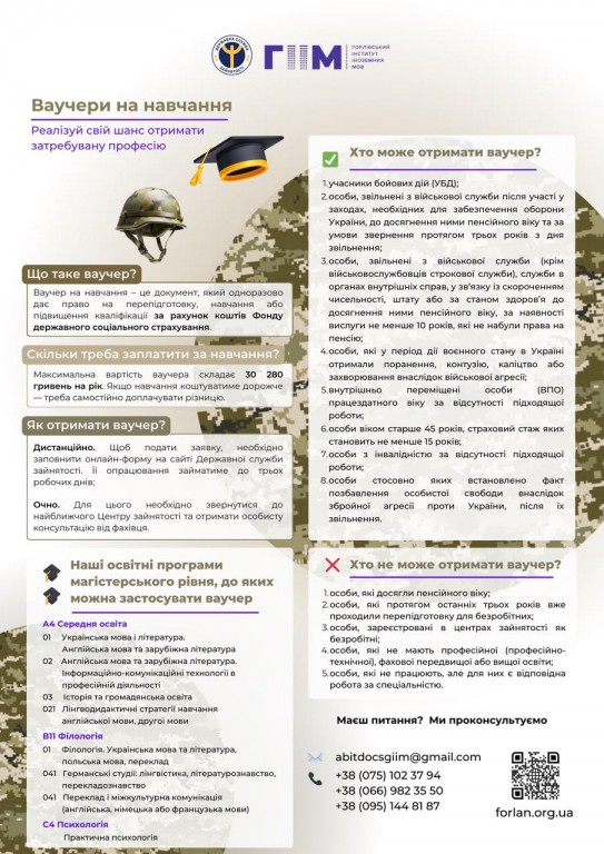 ⚙️ За освітніми програмами магістерського рівня навчання в інституті можна пройти коштом Ваучера.