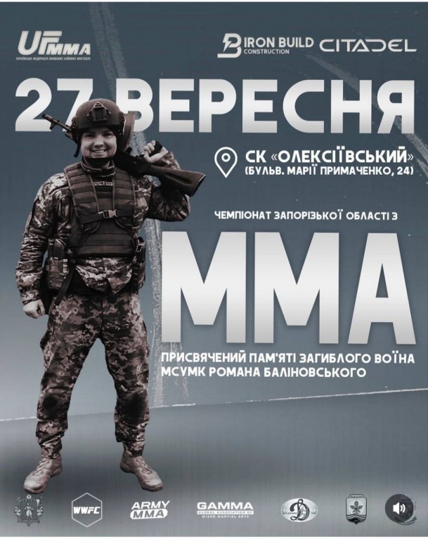 Чемпіонат Запорізької області зі змішаних бойових мистецтв UF MMA пройде у спортивно-оздоровчому комплексі «Олексіївський». Субота, 27 вересня 2025 року СК «Олексіївський» (бульв. Марії Примаченко, 24) Реєстрація учасників відкрита на сайті: fitofan.com Деталі за телефоном: +380 (97) 302 99 87 Ангеліна Турнір відбудеться за партнерства спортивного клубу IRON, адже ми…