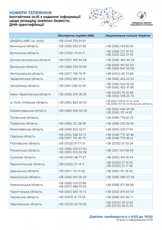 ВАЖЛИВА ІНФОРМАЦІЯ ДЛЯ РОДИН ЗНИКЛИХ БЕЗВІСТИ