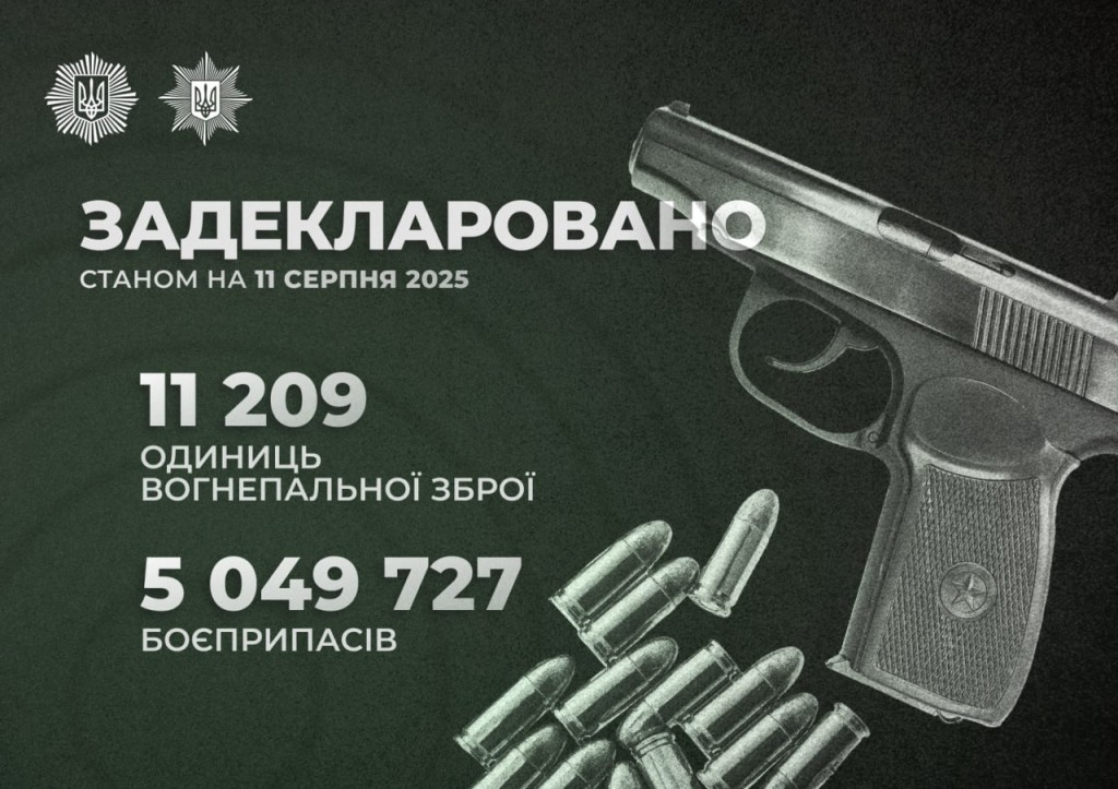 В УКРАЇНІ ЗАДЕКЛАРОВАНО 11 209 ОДИНИЦЬ ВОГНЕПАЛЬНОЇ ЗБРОЇ ТА ПОНАД 5 МІЛЬЙОНІВ БОЄПРИПАСІВ ДО НЕЇ