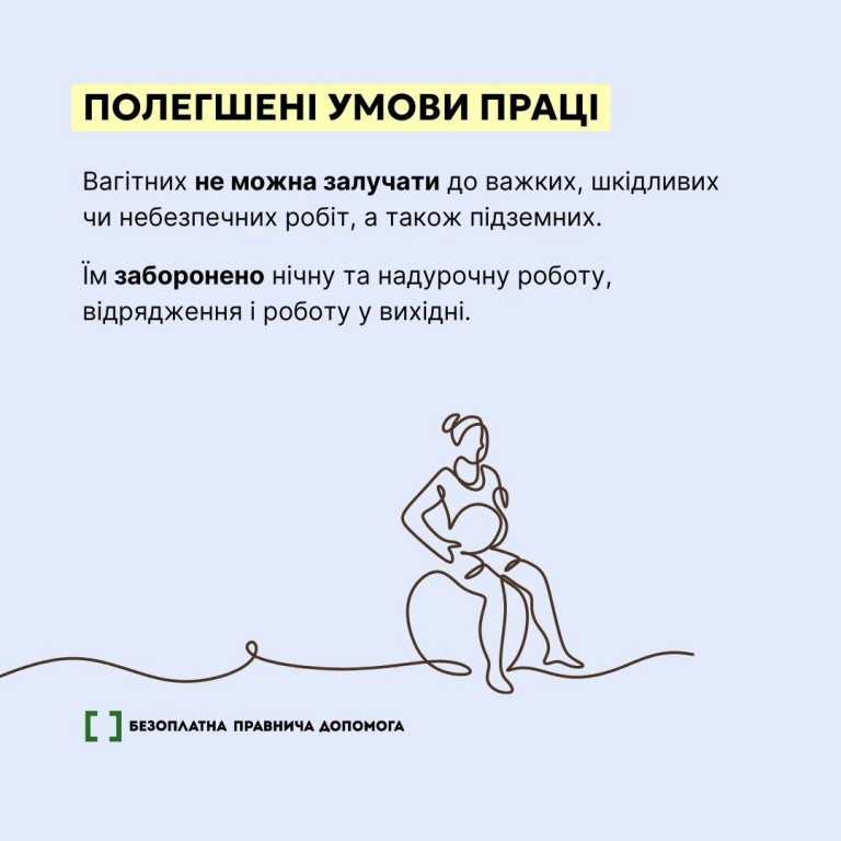 Як зазначають фахівці системи надання безоплатної правничої допомоги (БПД), якщо ви вагітні, закон гарантує вам низку трудових прав та гарантій, які захищають ваше здоров’я, добробут та рівність у сфері праці.