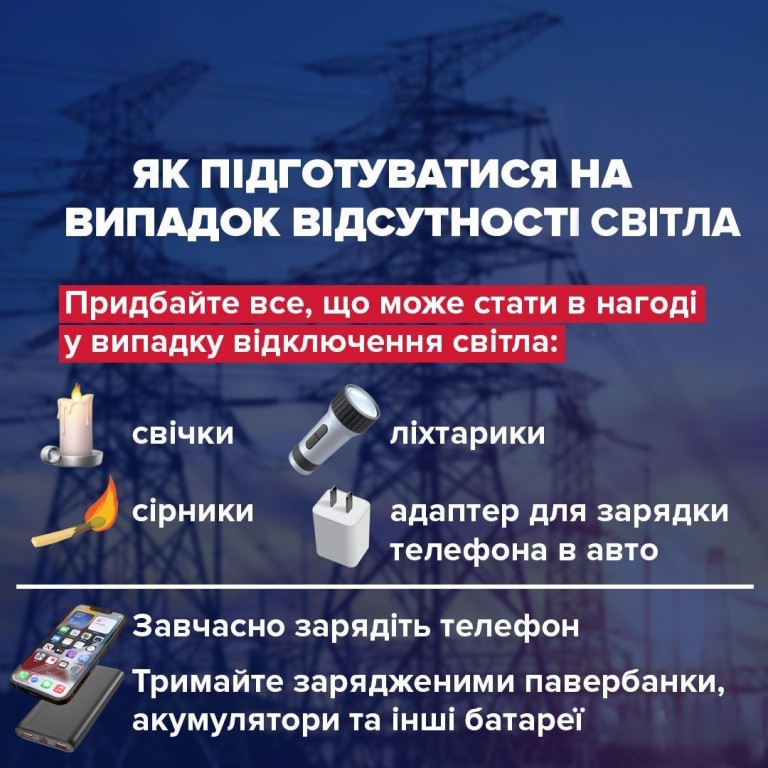 Підготуйте ТНО завчасно, не чекайте блекауту. Поділіться інструкцією з сусідами, особливо з літніми людьми, допоможіть сформувати набір тим, хто не може зробити це самостійно.