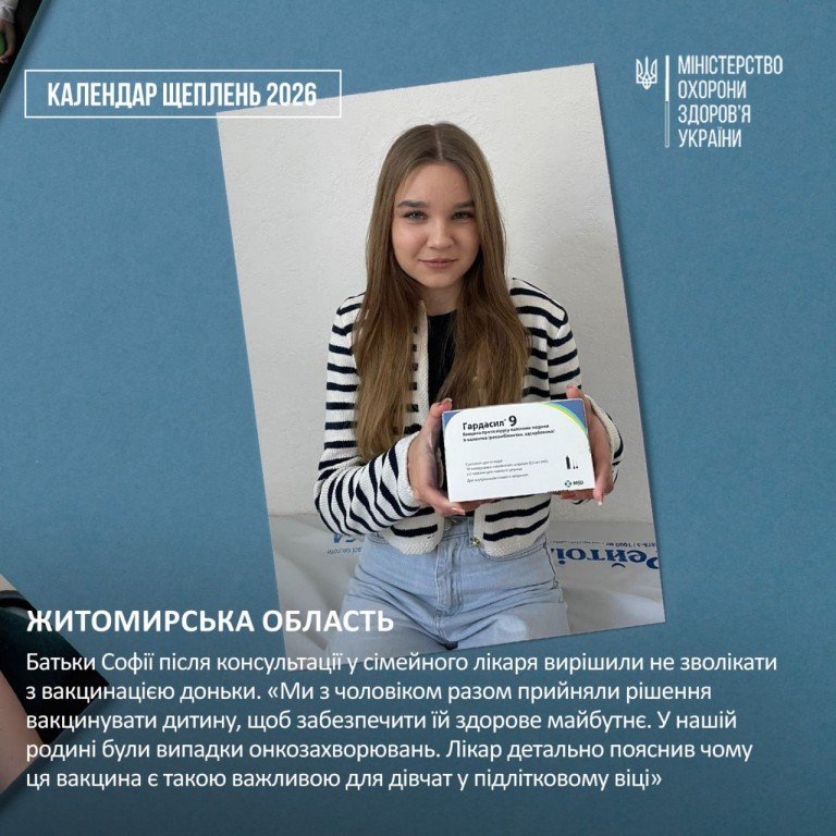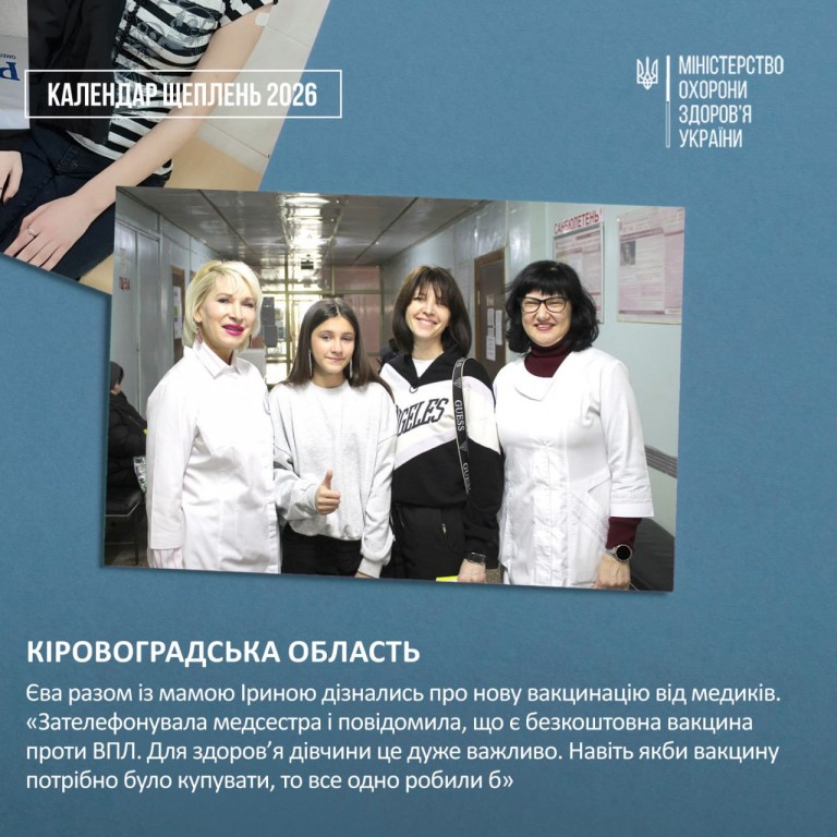 Запитайте про вакцинацію проти ВПЛ у свого лікаря або дізнайтеся більше про щеплення та зміни до національного Календаря профілактичних щеплень у спеціальному розділі на сайті МОЗ.