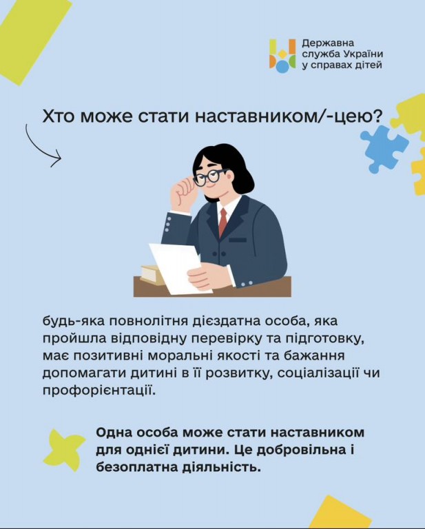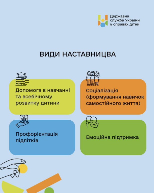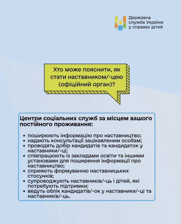 Детальні умови про наставництво - на вебпорталі Державної служби України у справах дітей за посиланням.