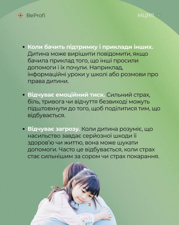 Коли ж дитина таки наважується повідомити про насильство? Якщо вона:
