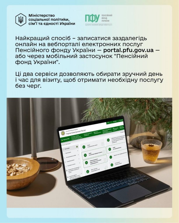 Щоб швидше отримати необхідні послуги, українці можуть використовувати вебпортал електронних послуг ПФУ та мобільний застосунок.