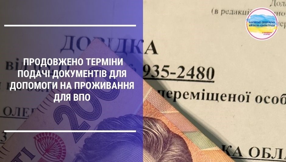 ПРОДОВЖЕНО ТЕРМІНИ ПОДАЧІ ДОКУМЕНТІВ ДЛЯ ДОПОМОГИ НА ПРОЖИВАННЯ ДЛЯ ВПО