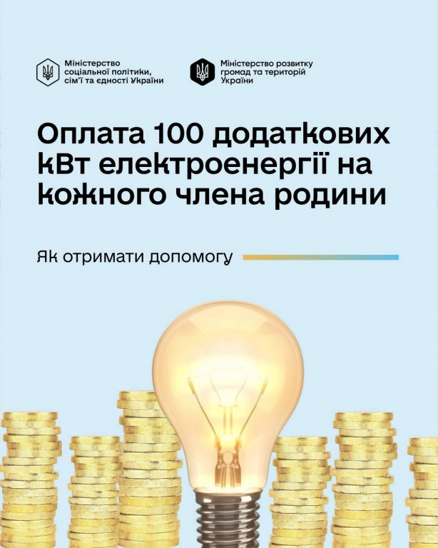 З 1 жовтня 2025 року стартувала програма додаткової підтримки для прифронтових територій – нарахування 100 додаткових кіловат електроенергії на кожного члена родини. Важливо: підтримка адресна, тому необхідно щомісяця вчасно сплачувати за спожиту електроенергію, у разі наявності такої послуги. Деталі - в…