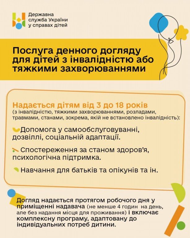 ЯК ОТРИМАТИ ПОСЛУГУ ДЕННОГО ДОГЛЯДУ ДЛЯ ДІТЕЙ З ІНВАЛІДНІСТЮ АБО ТЯЖКИМИ ЗАХВОРЮВАННЯМИ