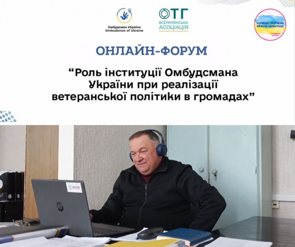 Сьогодні спеціаліст відділу з питань ветеранської політики Кам’янсько-Дніпровської міської військової адміністрації долучився до форуму «Роль інституції Омбудсмана України при реалізації ветеранської політики в громадах».