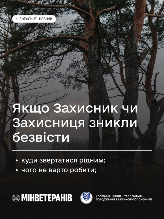 ЯКЩО ЗАХИСНИК ЧИ ЗАХИСНИЦЯ ЗНИКЛИ БЕЗВІСТИ: КУДИ ЗВЕРТАТИСЯ РІДНИМ І ЧОГО НЕ ВАРТО РОБИТИ