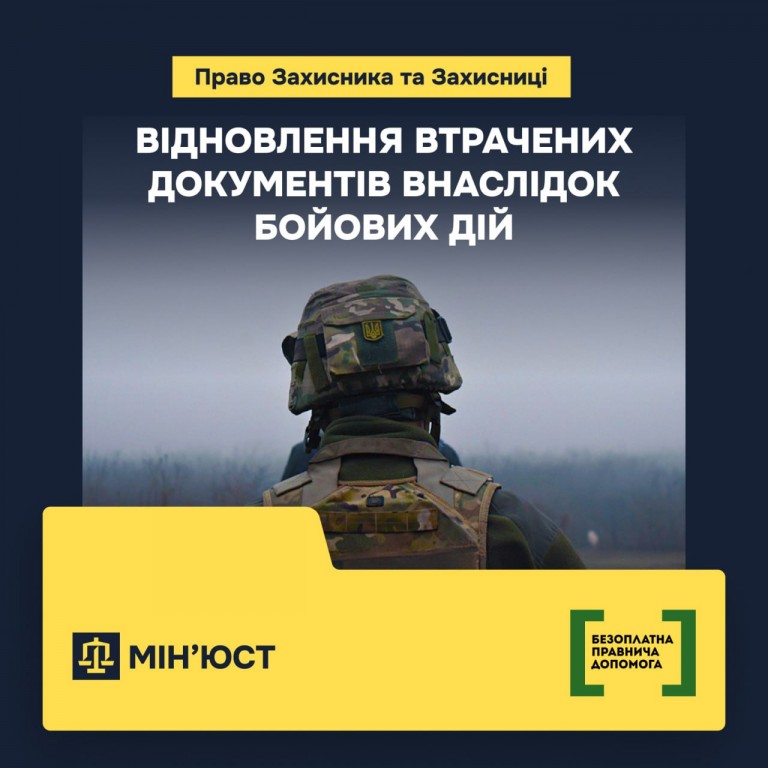 ВІДНОВЛЕННЯ ВТРАЧЕНИХ ДОКУМЕНТІВ ВНАСЛІДОК БОЙОВИХ ДІЙ – РОЗ’ЯСНЮЄ МІН’ЮСТ