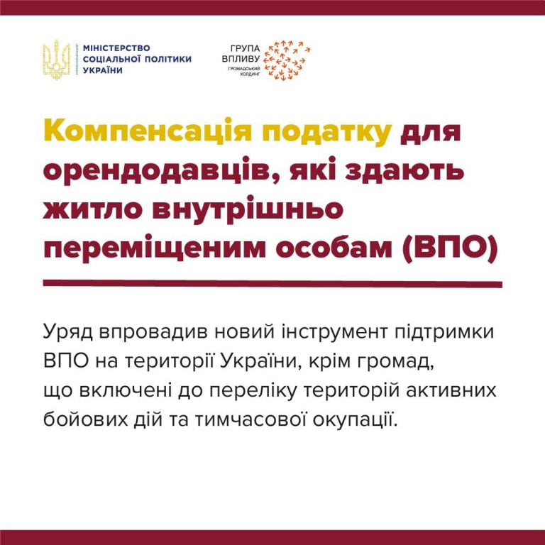 МІНСОЦПОЛІТИКИ ЩОДО КОМПЕНСАЦІЇ ПОДАТКУ ВЛАСНИКАМ ЖИТЛА, ЯКІ ЗДАЮТЬ ЙОГО В ОРЕНДУ ВПО