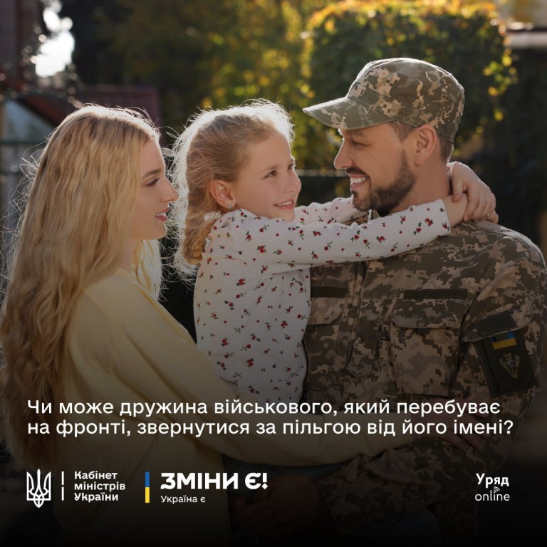 ЧИ МОЖЕ ДРУЖИНА ВІЙСЬКОВОГО, ЯКИЙ ПЕРЕБУВАЄ НА ФРОНТІ, ЗВЕРНУТИСЯ ЗА ПІЛЬГОЮ ВІД ЙОГО ІМЕНІ?