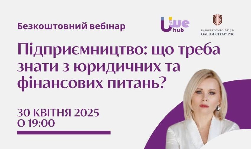 ВЕБІНАР «ПІДПРИЄМНИЦТВО: ЩО ТРЕБА ЗНАТИ З ЮРИДИЧНИХ ТА ФІНАНСОВИХ ПИТАНЬ?»