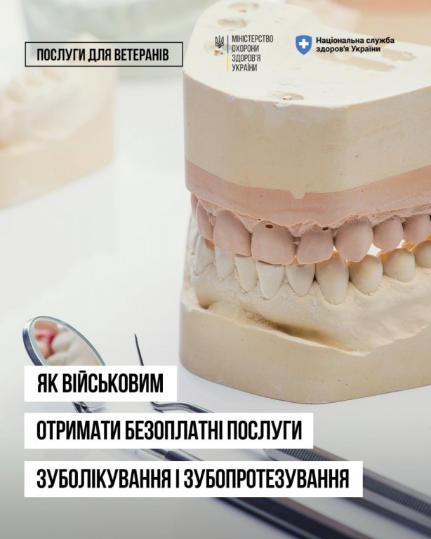ВІЙСЬКОВІ ТА ВЕТЕРАНИ МОЖУТЬ БЕЗОПЛАТНО ЛІКУВАТИ ЗУБИ