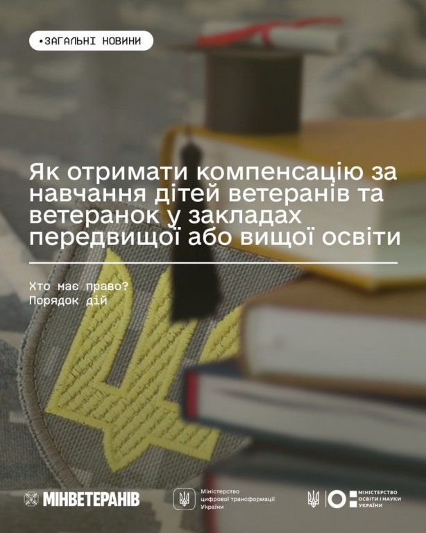 👉 Як повідомляє Мінветеранів України, діти ветеранів та ветеранок, які навчаються за контрактом у закладах фахової передвищої або вищої освіти можуть отримати компенсацію. ❓Хто має право:🔹діти, які мають статус члена сім’ї загиблого (померлого) Захисника чи Захисниці України🔹діти ветеранів та ветеранок з інвалідністю внаслідок війни🔹діти учасників…