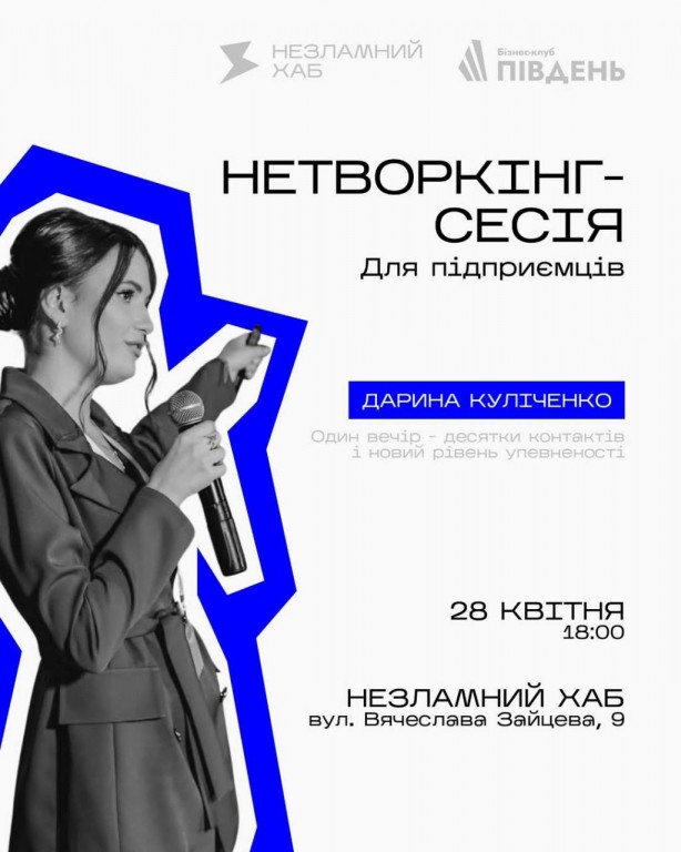 ⚙️Бізнес-клуб «Південь» та Дарина Куліченко організовують нетворкінг-сесію для підприємців в Незламному хабі Орбіта міста Запоріжжя. 🤝Зустріч передбачає унікальний вечір знайомств, практики самопрезентації та корисних бізнес-контактів. 📅 Захід відбудеться 28 квітня о 18:00 🏢 Місце зустрічі: вул. Вячеслава Зайцева, 9 (місто Запоріжжя) 👥…