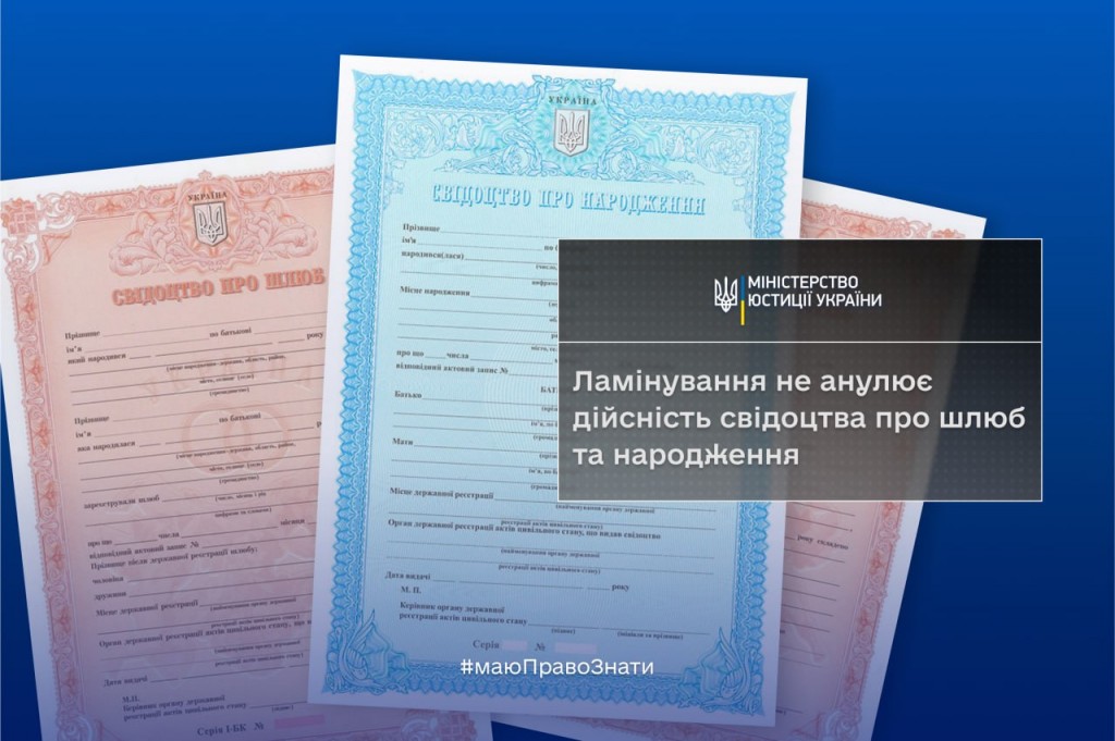 ЗАЛАМІНОВАНІ СВІДОЦТВА ПРО ШЛЮБ ТА НАРОДЖЕННЯ Є ДІЙСНИМИ
