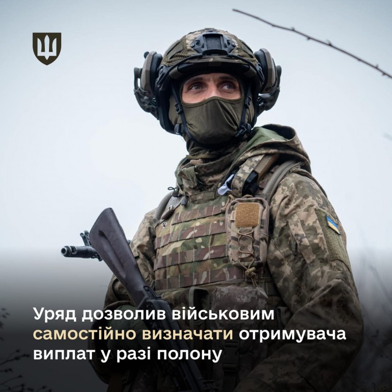 УРЯД ДОЗВОЛИВ ВІЙСЬКОВИМ САМОСТІЙНО ВИЗНАЧАТИ ОТРИМУВАЧА ВИПЛАТ У РАЗІ ПОЛОНУ