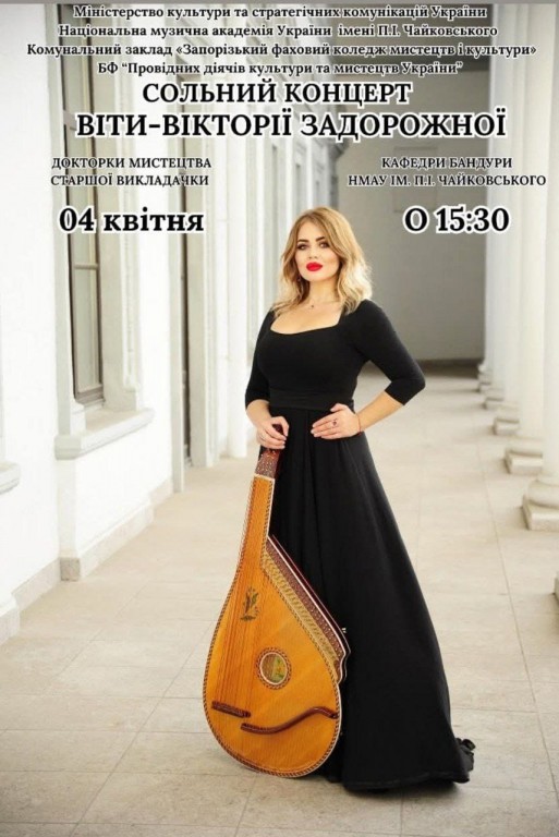 Шановні мешканці громади!Раді повідомити вам, що в рамках співпраці нашої громади з Запорізьким фаховим коледжем мистецтв і культури у вас є чудова можливість безкоштовно відвідати сольний концерт докторки мистецтва кафедри бандури НМАУ ім. П.І. Чайковського Віти-Вікторії Задорожної, який відбудеться 04 квітня 2025 року о 15.30за адресою: м.Запоріжжя, бульвар Марії…