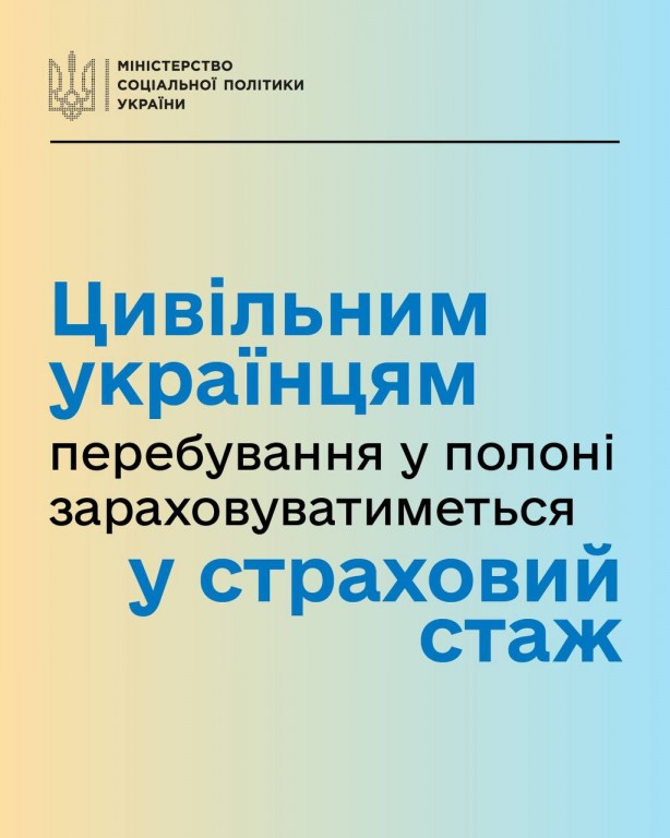 ЦИВІЛЬНИМ УКРАЇНЦЯМ ПЕРІОД ЇХНЬОГО ПЕРЕБУВАННЯ У ПОЛОНІ ЗАРАХОВУВАТИМЕТЬСЯ У СТРАХОВИЙ СТАЖ