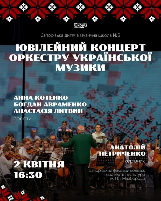 🔵 2 квітня відбудеться Творчий ювілей Оркестру української музики Запорізької дитячої музичної школи №3, у якому братиме участь мешканець нашої Кам’янсько-Дніпровської громади. 🙌 Тож, запрошуємо всіх охочих відвідати концерт та підтримати нашого музиканта. 📅 Дата: 2 квітня (середа) ⏰ Час: 16:30 🏢 Локація: Запорізький фаховий музичний коледж ім. П. І.…