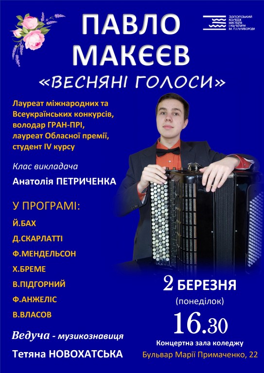 ЗАПРОШЕННЯ НА СОЛЬНИЙ КОНЦЕРТ ПАВЛА МАКЄЄВА "ВЕСНЯНІ ГОЛОСИ"