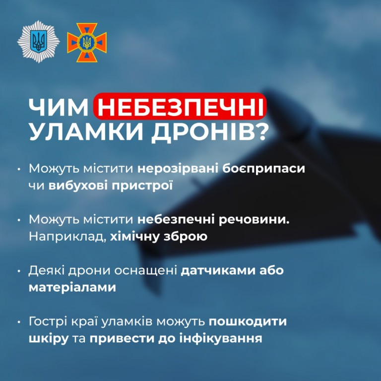 👆🔺МВС України пояснює небезпеку таких уламків, адже чи не кожної ночі ворог атакує населені пункти України ударними БпЛА. Їхні уламки можна зустріти в більшості регіонів держави. 👆 Слід пам’ятати головні правила безпеки у разі виявлення підозрілих предметів:❌ Не підходьте!❌ Не чіпайте!✅ Телефонуйте 101, 102, 112! ✍️ МВС…