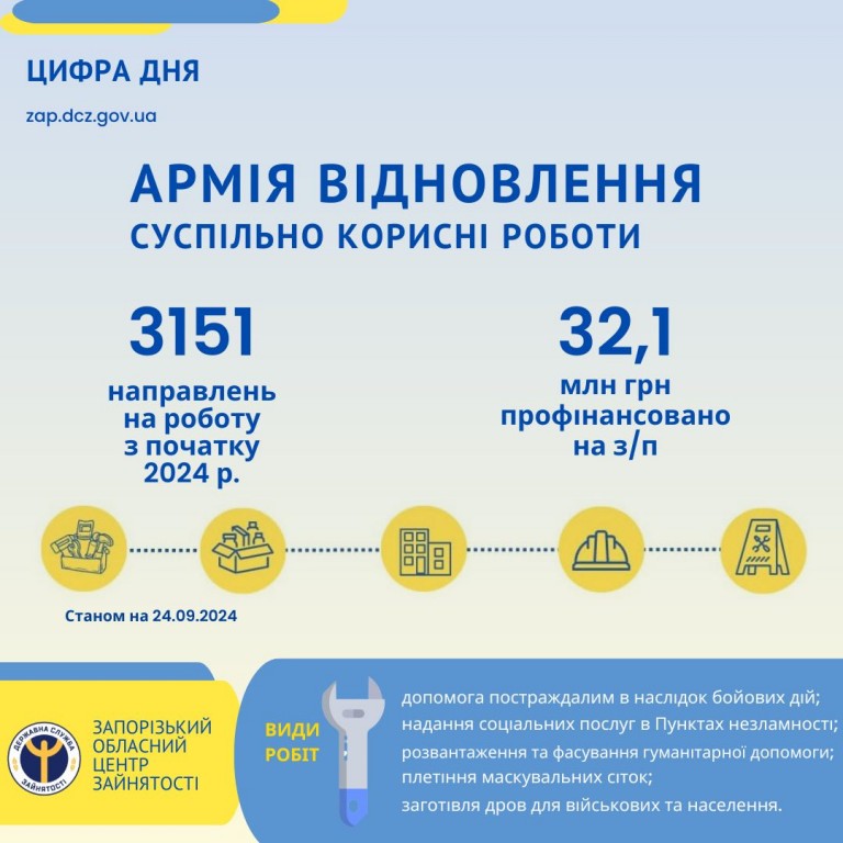 ІНФОРМАЦІЯ ВІД ЗАПОРІЗЬКОГО ОБЛАСНОГО ЦЕНТРУ ЗАЙНЯТОСТІ ЩОДО «АРМІЇ ВІДНОВЛЕННЯ»