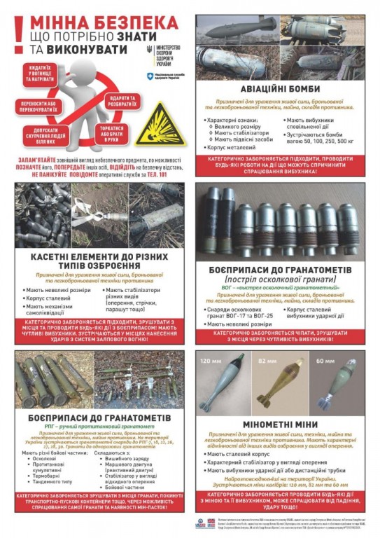 Про усі подібні знахідки повідомляйте рятувальників (тел. 101) або національну поліцію (тел. 102)
