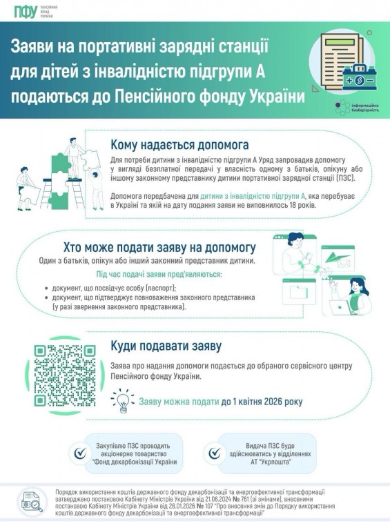 Діти з інвалідністю підгрупи А належать до найбільш вразливих категорій населення, адже їхнє життя та здоров’я безпосередньо залежать від безперебійного електроживлення медичних апаратів, засобів реабілітації, пристроїв підтримки комунікації та дихання. З метою забезпечення таких дітей резервними джерелами живлення КМУ ухвалив постанову №107 від 28.01.2026…