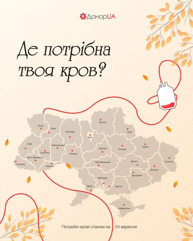 🩸Більшість центрів крові виконують мобілізаційне замовлення та передають кров на потреби фронту, тому заплануйте донацію (https://bit.ly/donoruaregister) навіть, якщо потреб у вашому регіоні немає.🌡 Київ: всі групи крові🌡 Одеса: всі групи крові🌡 Рівне: всі групи крові🌡 Дніпро: всі групи крові🌡 Миколаїв: всі групи крові🌡 Херсон: 1+/-, 2-, 3-,…