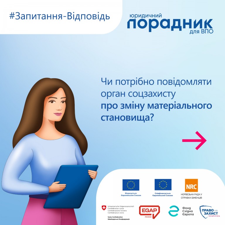 ЧИ ПОТРІБНО ПОВІДОМЛЯТИ ОРГАН СОЦЗАХИСТУ ПРО ЗМІНУ МАТЕРІАЛЬНОГО СТАНОВИЩА?