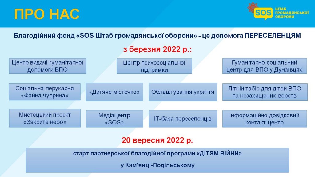 БЛАГОДІЙНИЙ ПАРТНЕРСЬКИЙ ПРОЄКТ «ДІТЯМ ВІЙНИ» - ДЛЯ ДІТЕЙ ІЗ НЕБЕЗПЕЧНИХ РЕГІОНІВ УКРАЇНИ
