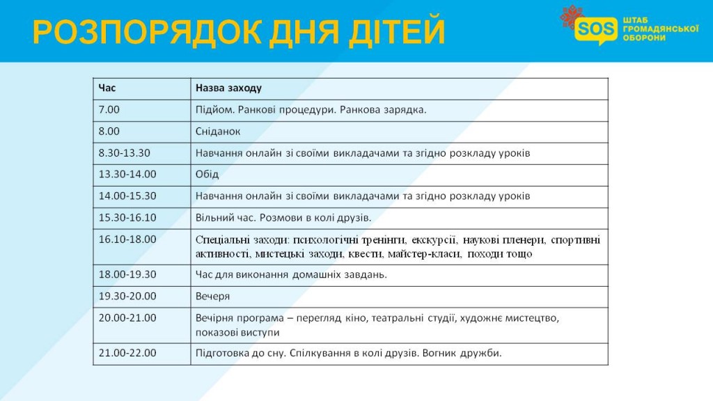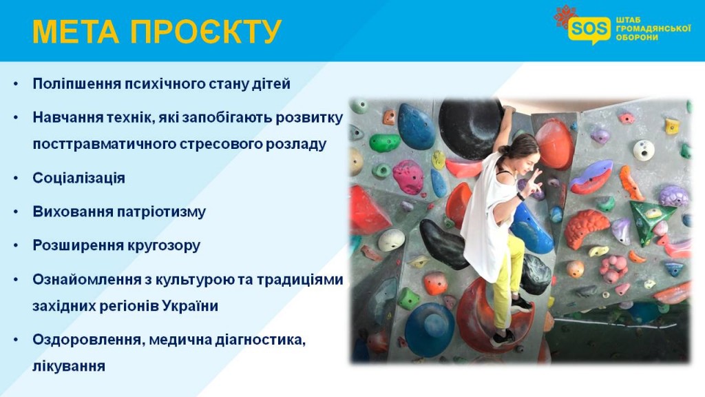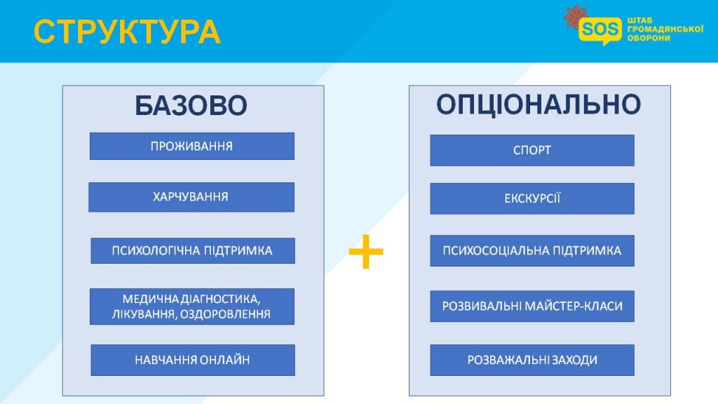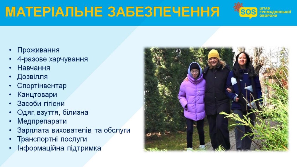 Програма розрахована на 30 днів перебування у західних регіонах України, де зараз відносно безпечно, а також є всі необхідні ресурси.