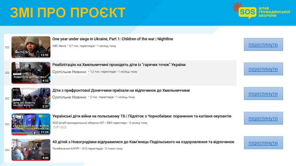 Презентація проєкту «Дітям війни» та посилання на щоденники проєкту на ютуб-каналі фонду для ознайомлення.