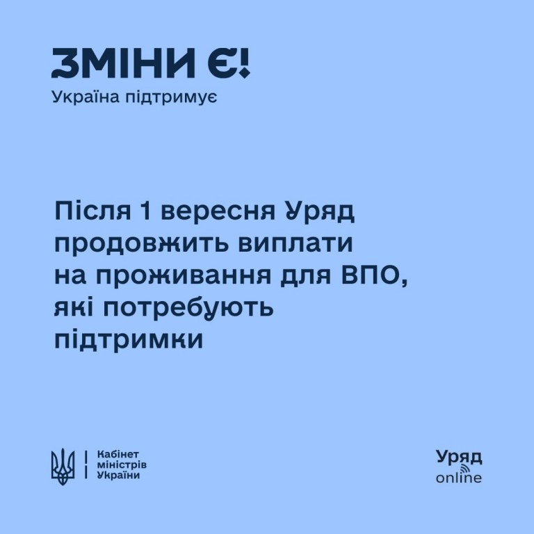 ПІСЛЯ 1 ВЕРЕСНЯ УРЯД ПРОДОВЖИТЬ ВИПЛАТИ НА ПРОЖИВАННЯ ДЛЯ ВПО, ЯКІ ПОТРЕБУЮТЬ ПІДТРИМКИ