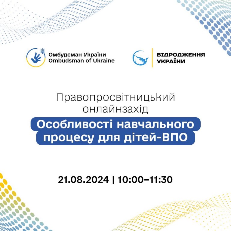 21 СЕРПНЯ 2024 РОКУ ВІДБУДЕТЬСЯ ОНЛАЙНВЕБІНАР «ОСОБЛИВОСТІ НАВЧАЛЬНОГО ПРОЦЕСУ ДЛЯ ДІТЕЙ-ВПО»
