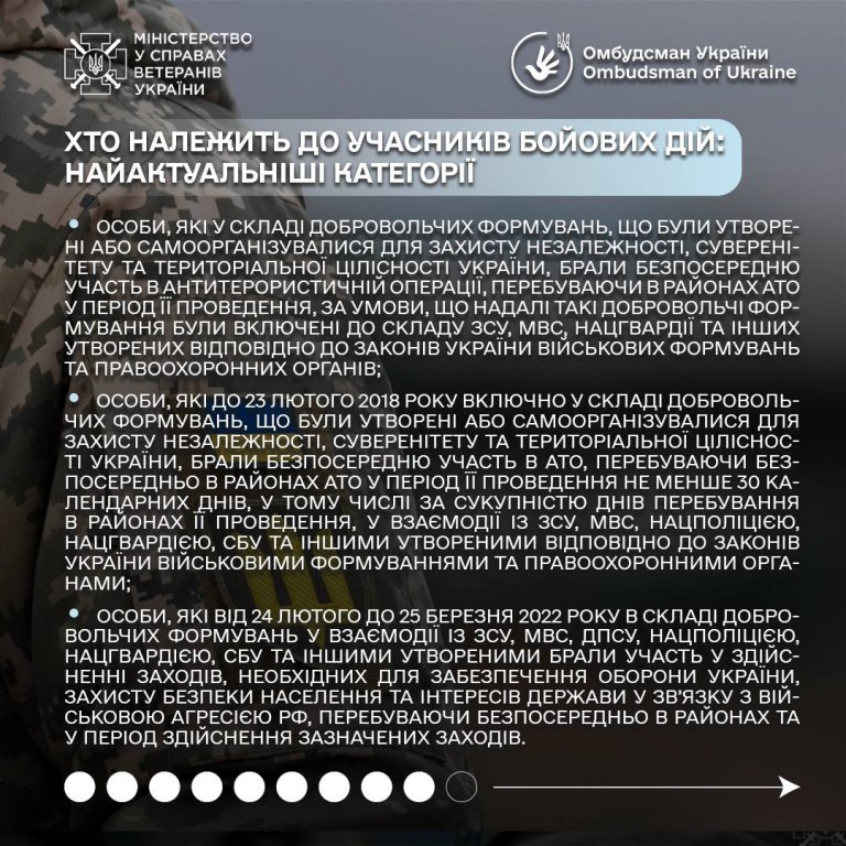 В Україні від серпня цього року діє спрощений порядок отримання статусу учасника бойових дій.