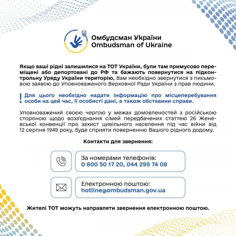 ❗️Якщо Ви або Ваші рідні перебувають на ТОТ України або в РФ і бажають повернутися на підконтрольну Уряду України територію, звертаємо увагу на важливу інформацію від Офісу Омбудсмана…