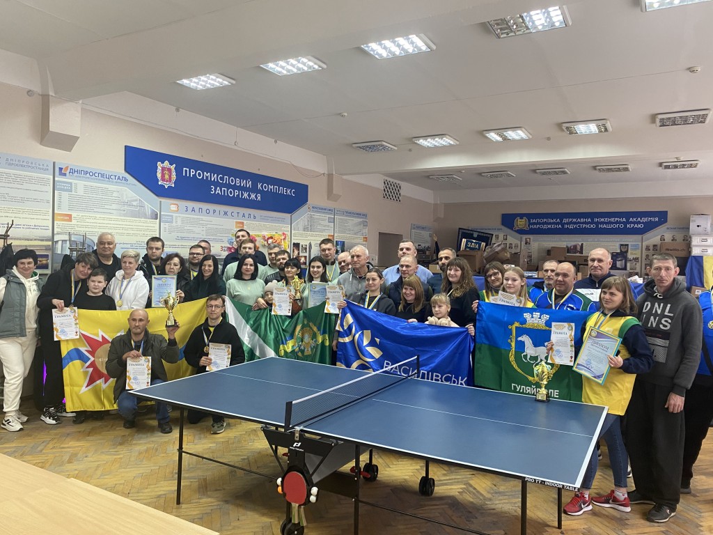 🏓Разом з командою Кам’янсько-Дніпровської громади на чолі з її головним тренером Андрієм Грицюком, до заходу долучилися збірні Енергодарської, Василівської та Гуляйпільської громад. ♟Змагання проходили у таких видах спорту: шахи, шашки, настільний теніс та дартс.