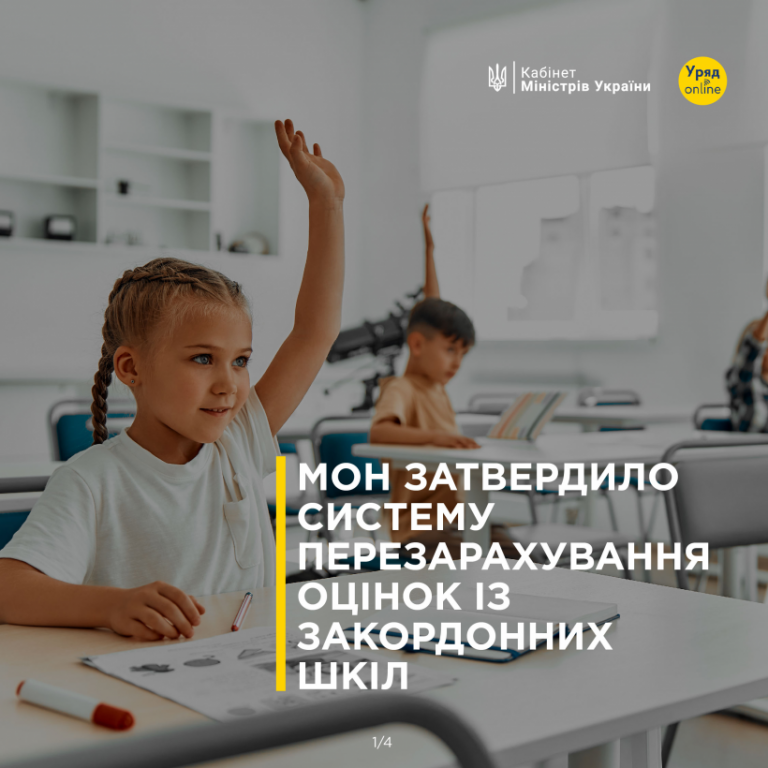 МОН ЗАТВЕРДИЛО СИСТЕМУ ПЕРЕЗАРАХУВАННЯ ОЦІНОК ІЗ ЗАКОРДОННИХ ШКІЛ