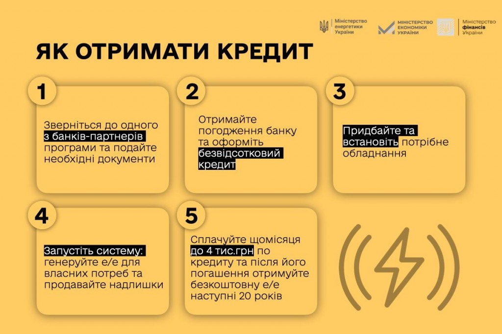 КОЖЕН УКРАЇНЕЦЬ МОЖЕ ОТРИМАТИ КРЕДИТ ПІД 0% НА КУПІВЛЮ СОНЯЧНОЇ АБО ВІТРОВОЇ ЕЛЕКТРОСТАНЦІЇ