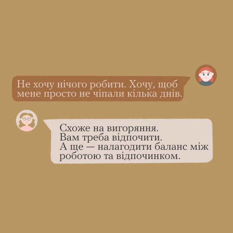 Таке фізичне чи емоційне виснаження також зветься «вигорянням». Аби не вигоріти, підтримуйте баланс між роботою та особистим життям. І почати варто з простого — припиніть перевіряти робочі чати у вихідні. А ще —