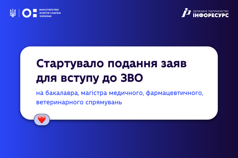 СТАРТУВАЛО ПОДАННЯ ЗАЯВ ДЛЯ ВСТУПУ ДО ЗВО
