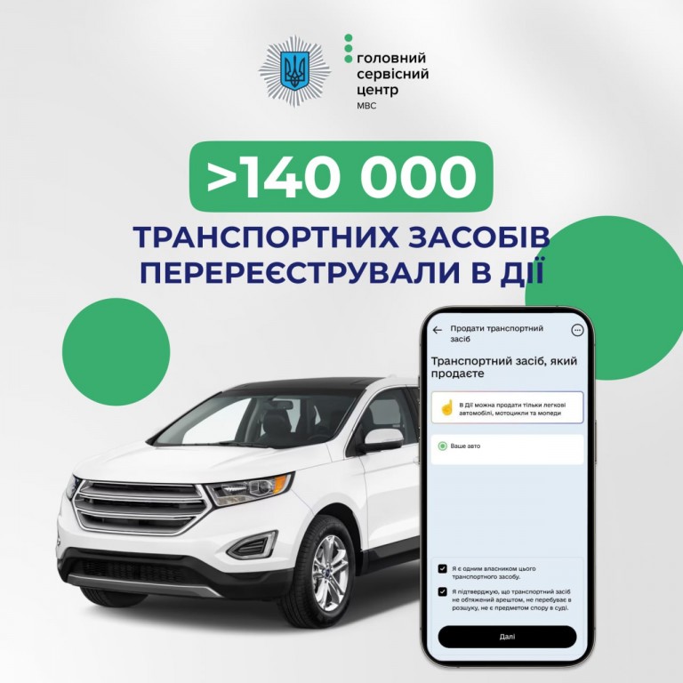 🚗 УЖЕ ПОНАД 140 000 ТРАНСПОРТНИХ ЗАСОБІВ ГРОМАДЯНИ ПЕРЕРЕЄСТРУВАЛИ У ДІЇ
